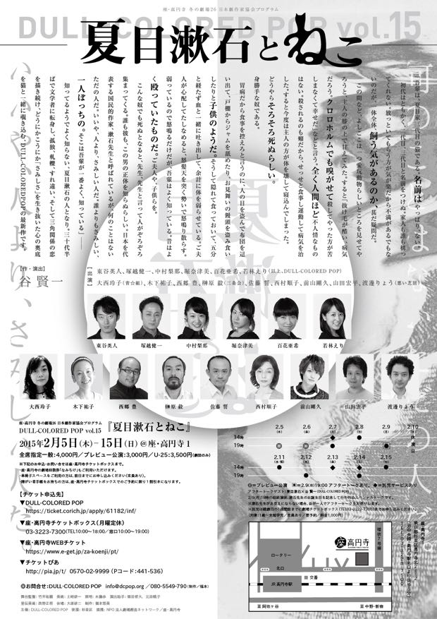 - 第15回本公演『夏目漱石とねこ』作・演出(2015年2月、座・高円寺1)